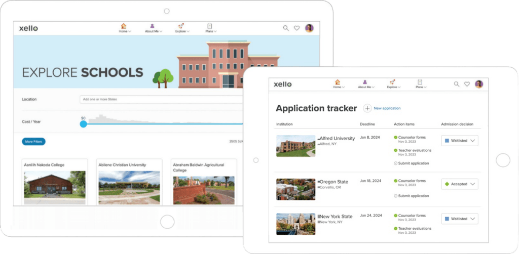 Juniors and seniors preparing for college can easily submit and track application documents to thousands of colleges and universities directly through Xello.
