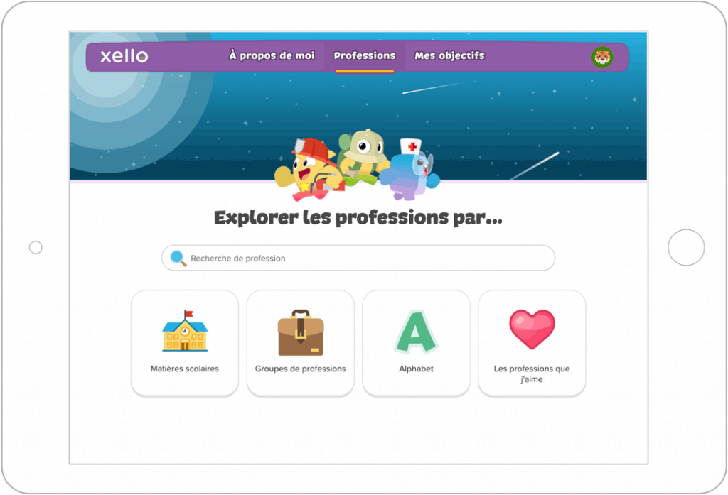Élargissez l’horizon de vos élèves et montrez-leur toutes les possibilités futures. Les professions prennent vie dans Xello grâce à des descriptions faciles à comprendre, à des faits découvrables, à des histoires et à des biographies.